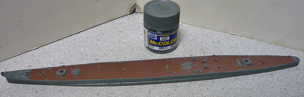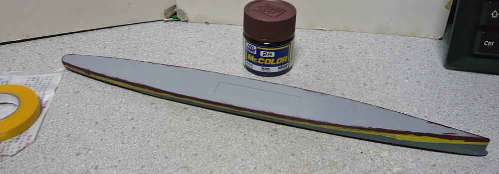 マスキングして29艦底色を側面だけ塗ります。底塗るのはフルハルモデルだけでいいやん・・・