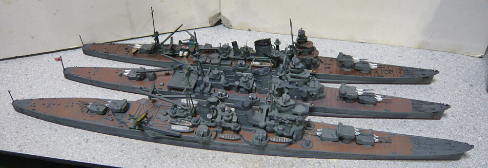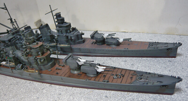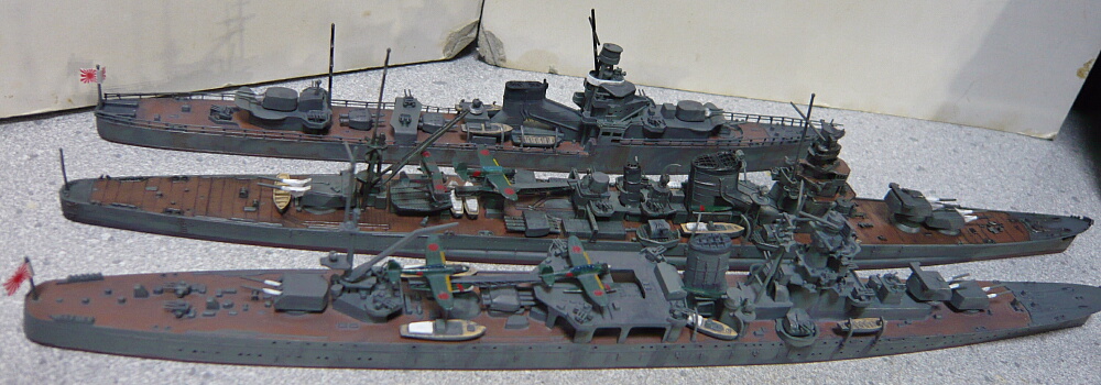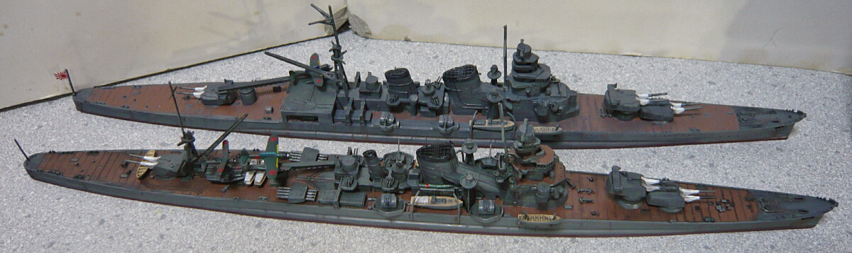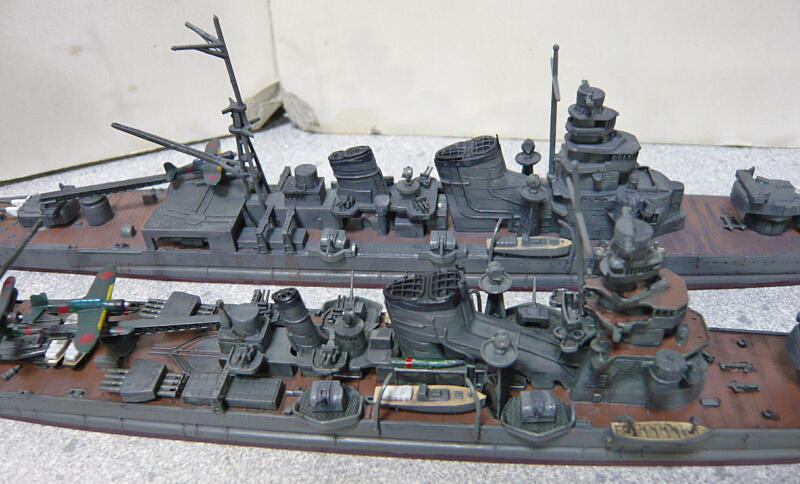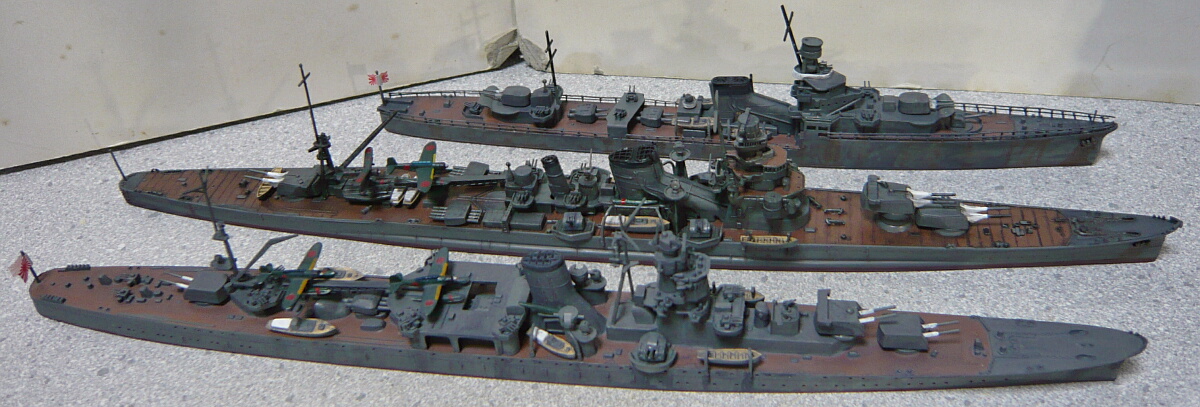 日本の重巡洋艦が一応各型揃いました。でもまだいくつか集める余地がある気がしますね。例えば同型準同型が戦争序盤にさっさと沈んだ中で修理と改修を繰り返して終戦間際まで生き残った青葉、忙しくて改装する暇もなくほぼ竣工時の姿のままだった鳥海、一方で対空魔改造された摩耶・・・もう少しこのままブームが続けば、古鷹型も竣工時とか出るかもしれませんし。ししし。