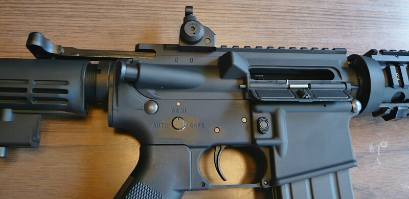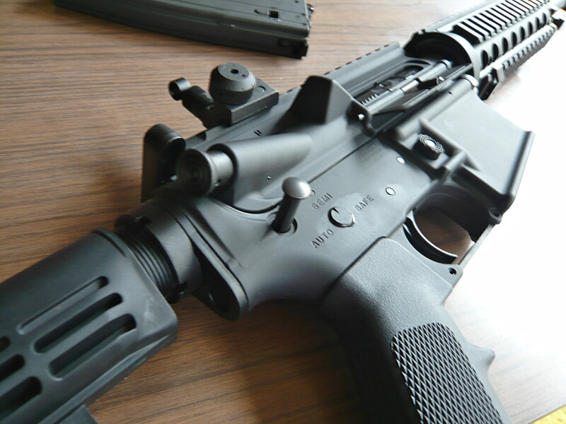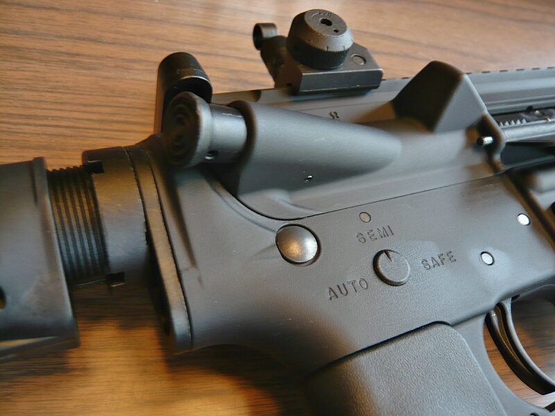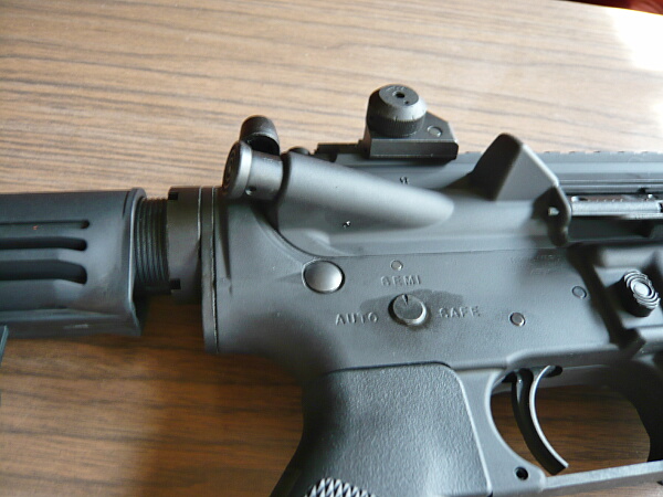 レシーバー右側面にはライブとなるボルトフォワードアシストノブがありますが、押した手応えは電動ガンのものとあまり変わりません。ここはあまり触る事も無いでしょう。右側セレクターの表示はちゃんと左セレクターレバーの動作に連動します。