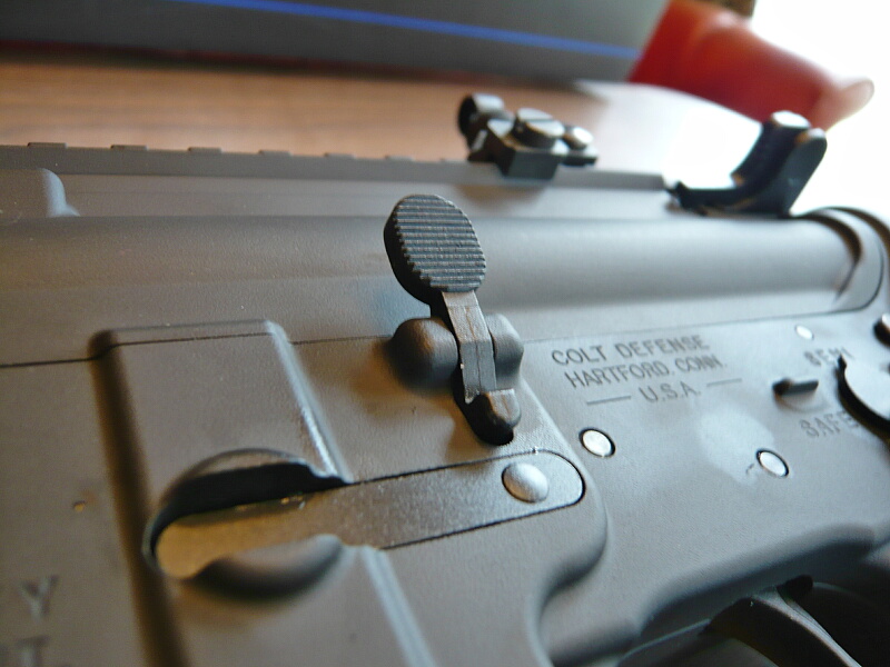 ボルトストップが掛かっている時はレシーバー左のボルトキャッチが持ち上がった状態になっています。