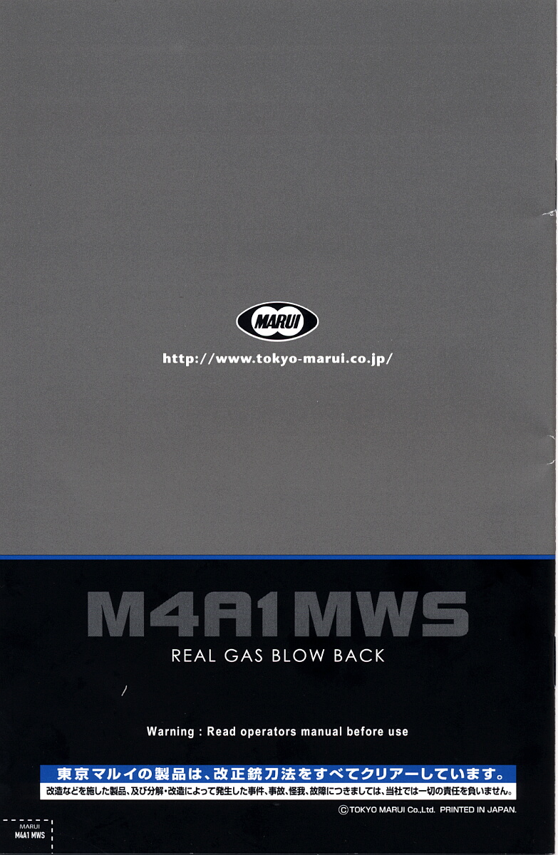 前回に引き続き東京マルイのM4A1 MWSです。