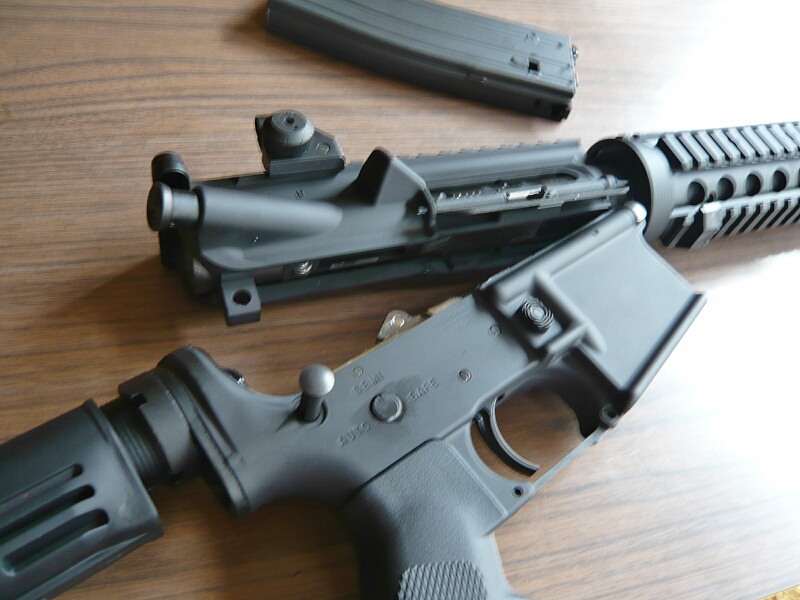 ちょっと固いですがエイヤッとアッパーレシーバーを押し上げるとガチャッとテイクダウンします。