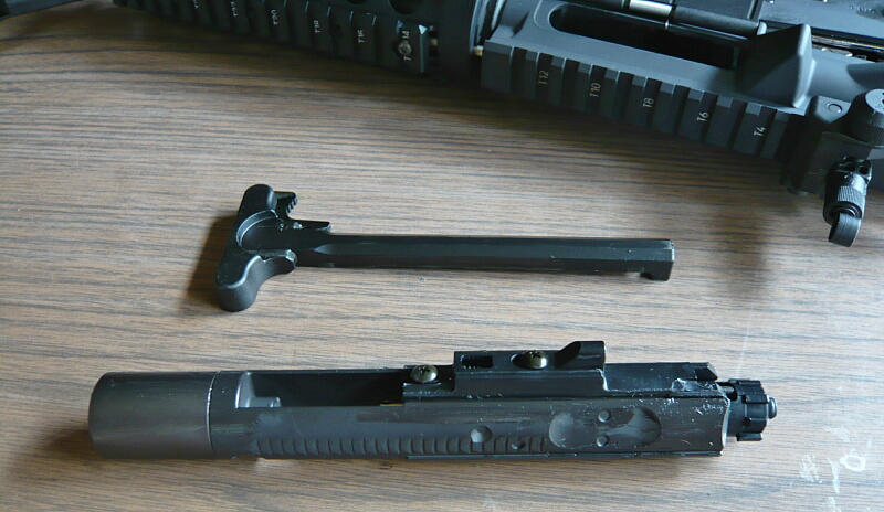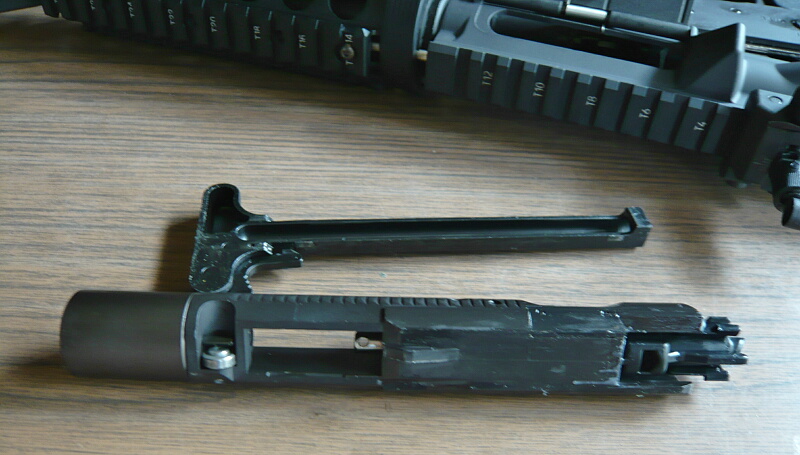 取り出されたチャージハンドルとボルトアセンブリ。