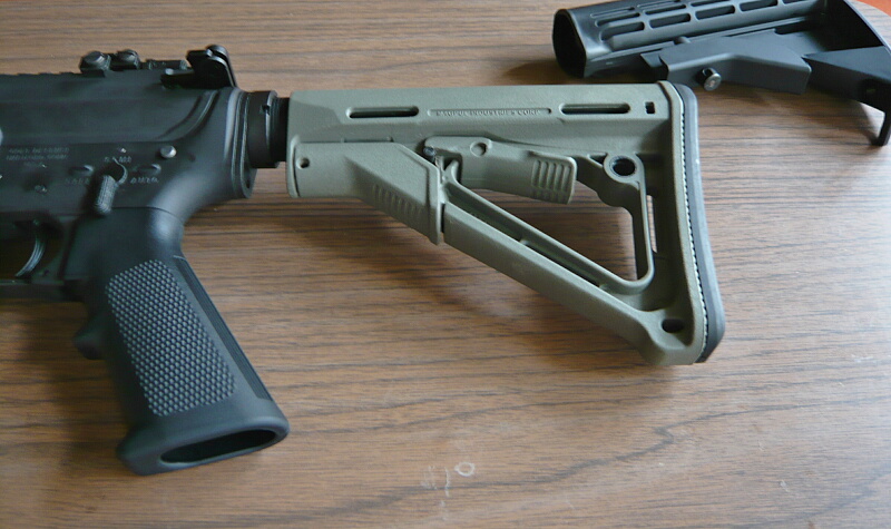 MAGPUL PTSのCTRストック。このストックは内側を削り込んですり合わせないとトイガンのストックチューブにはキツかったのですが、現在巷で売られているレプリカはそのまま取り付くかと思います。(実銃M4系のストックチューブは細めのミルスペックと太いコマーシャルの2種類があります)