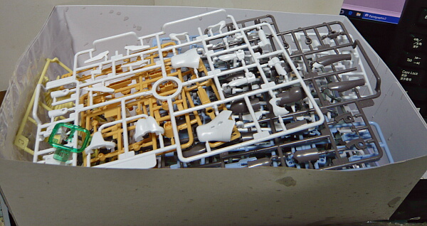 袋から出して箱へ戻してもこの物量感。例によってランナーは離型剤が残っていて触っていると手がヌルヌルしてきます。いつも通り中性洗剤でランナーを洗うところから始めましょうか。