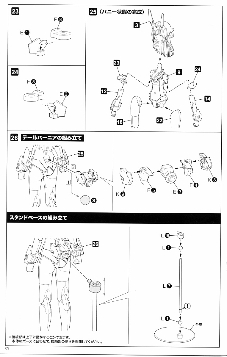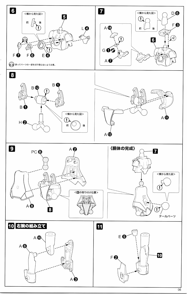 手首パーツ6セット、尻尾パーツ、ポリキャップが3個。