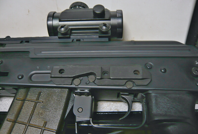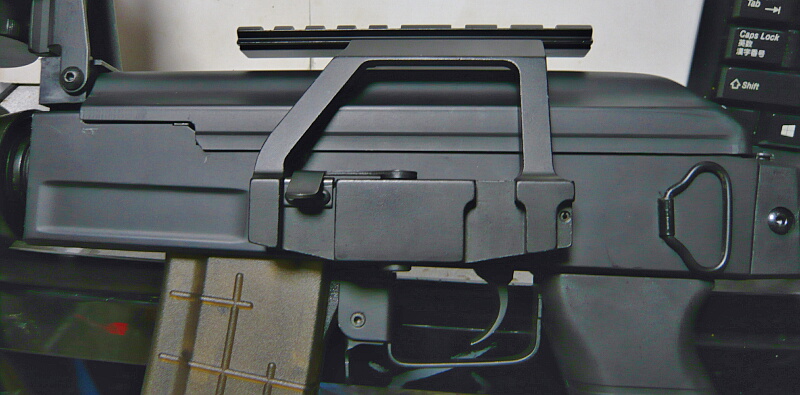 CYMAのAK47タクティカルにマウントごと置いたところ。AK用なので当たり前ですが、あつらえたようにピッタリ。いやコレにあつらえてあるんですけれども。
