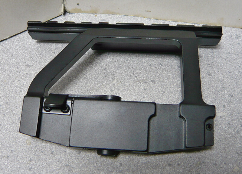 そうそう付属のマウントベースは大抵のAKの左側面のリベットの位置と形が合うようになっています。上画像はウチのマルイ次世代AKS74Uにベースのみを所定の位置に置いたところ。