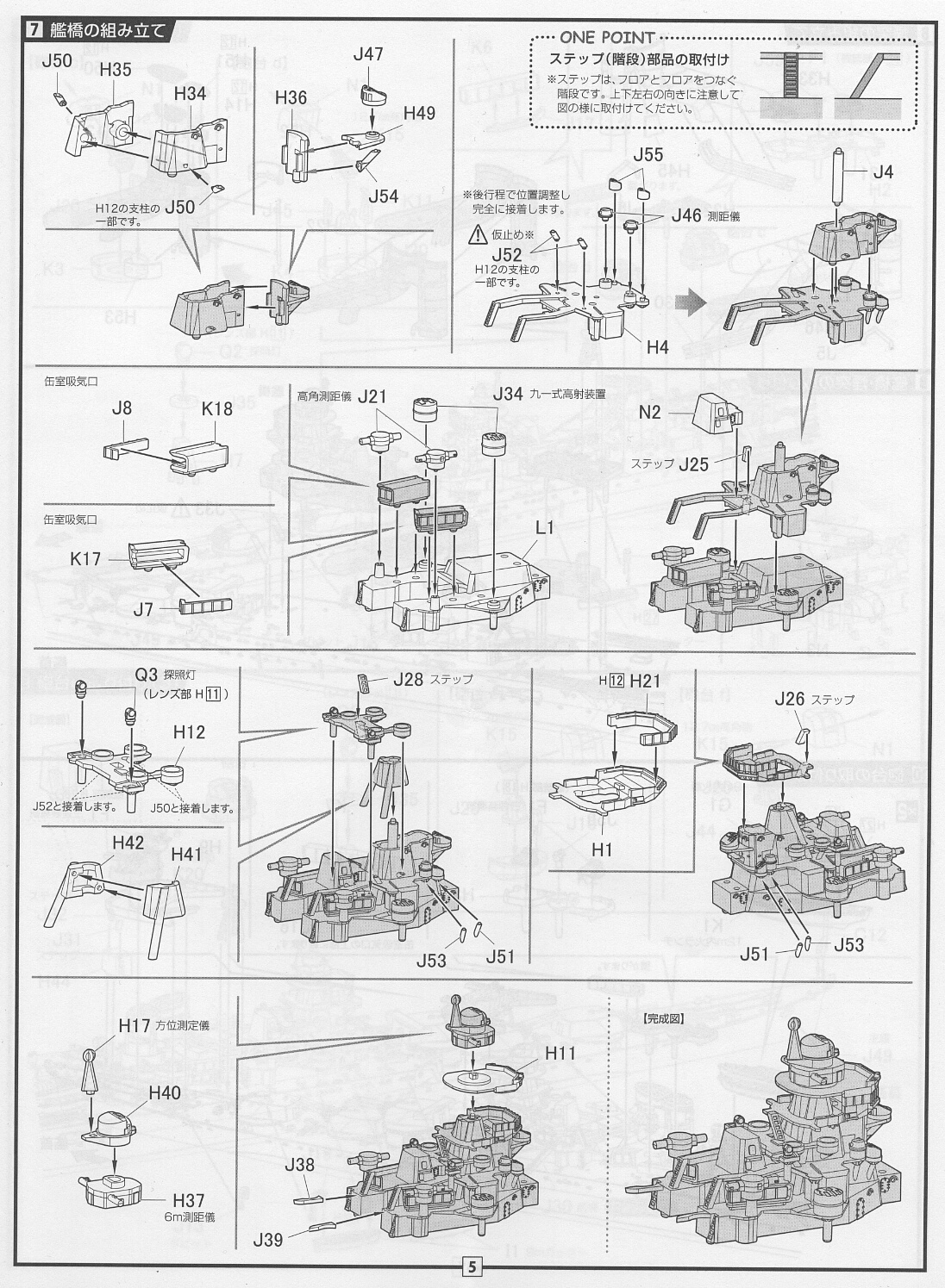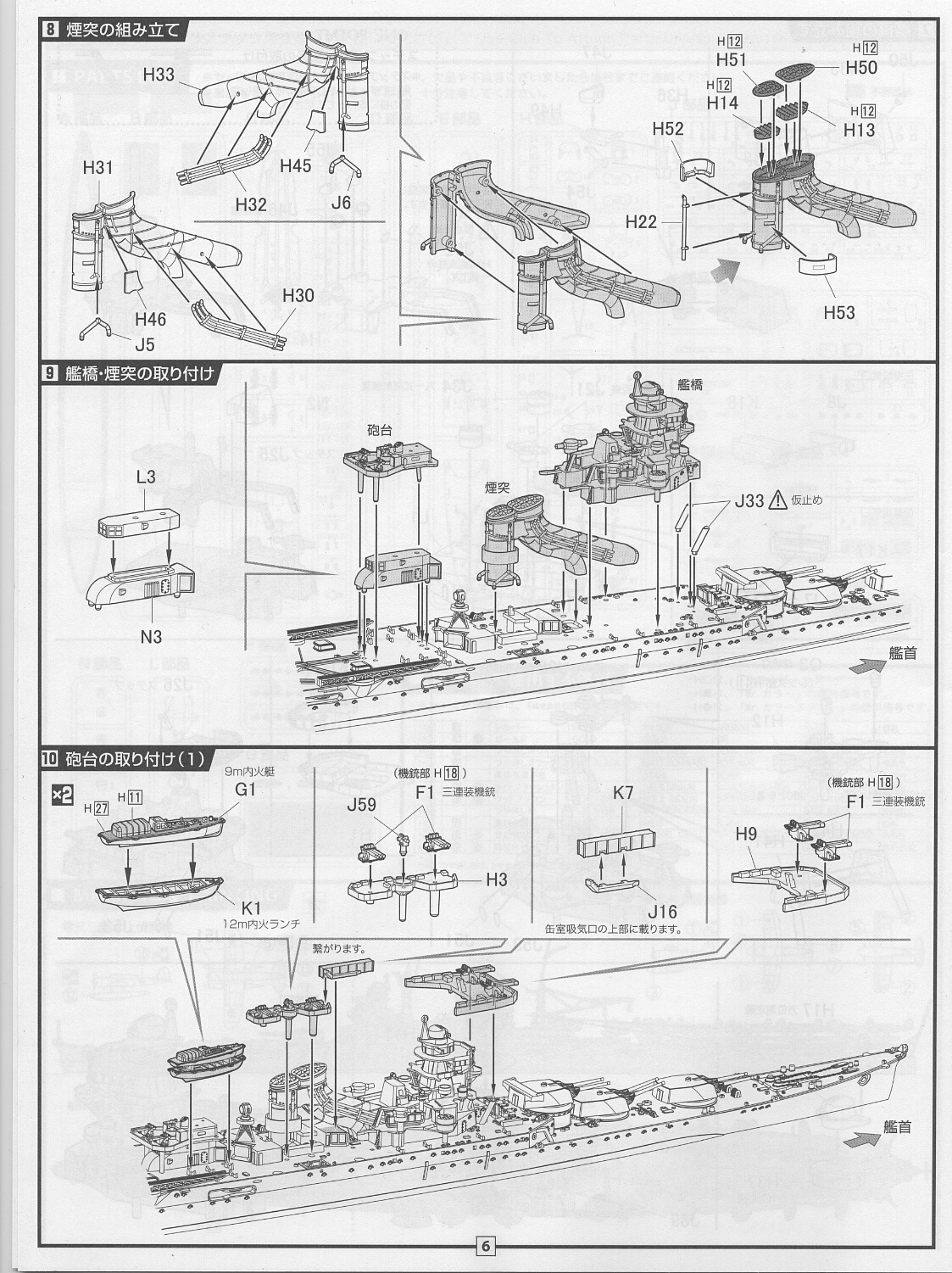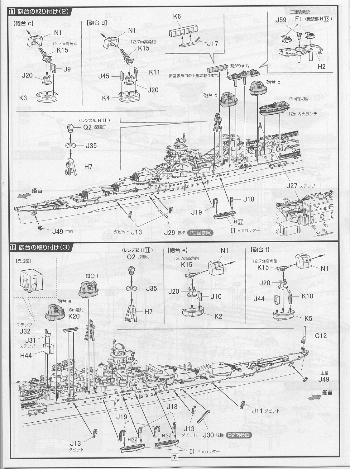 上部構造物を載せてゆきます。単装機銃を先に載せたりとかは今回はないので説明書通りで問題ありません。ただし仮組みは入念に。結構すんなり合わない部分があります。