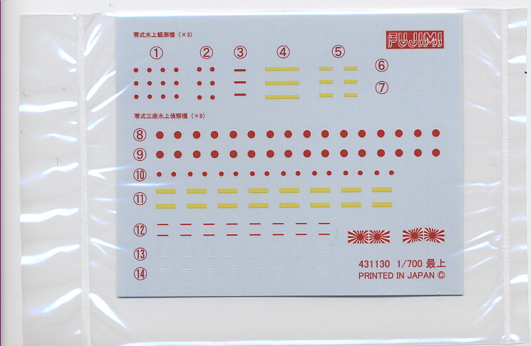 デカール。搭載機用のマークが主で艦本体用は旗くらい。