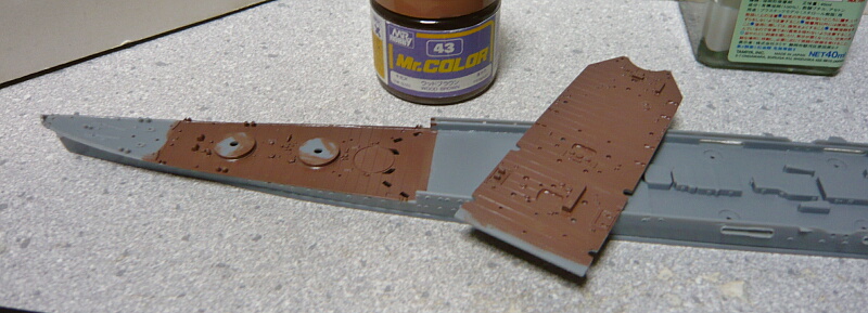 リノリウム色として43ウッドブラウンに混ぜ物をしたもので塗装。(混ぜ物はレッドブラウンや艦底色などで少し赤みを足して暗くしています。お好みで)