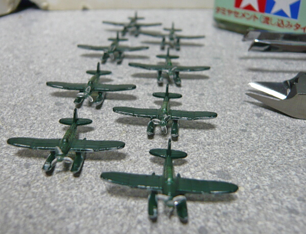 ゼロ偵は本体の他はフロート2つとプロペラだけなので較べたら天国のように簡単。ただしプロペラはランナーから切り離す時に砕いてしまいやすいので、よく切れる先の細いニッパーは必須。タミヤの薄刃ニッパーで十分ですが・・・