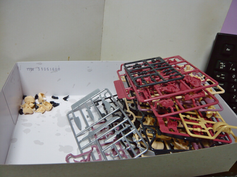 ランナーを中性洗剤で洗い離型剤をおとして乾燥させ、あとはガンプラ感覚で組むだけです。塗装は後でも出来るのでとりあえずパチ組んでしまいましょう。