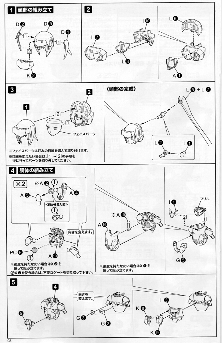 PCはPE製のポリキャップ、XはPOM樹脂(完成品可動フィギュアの関節などに使われている、塗装も接着も出来ない強化樹脂)の強化品で、X1はA19の、X2はA2のパーツの強化品として置き換え利用するため今回から付属されたものです。ただし利用は任意なので使わなくても可。