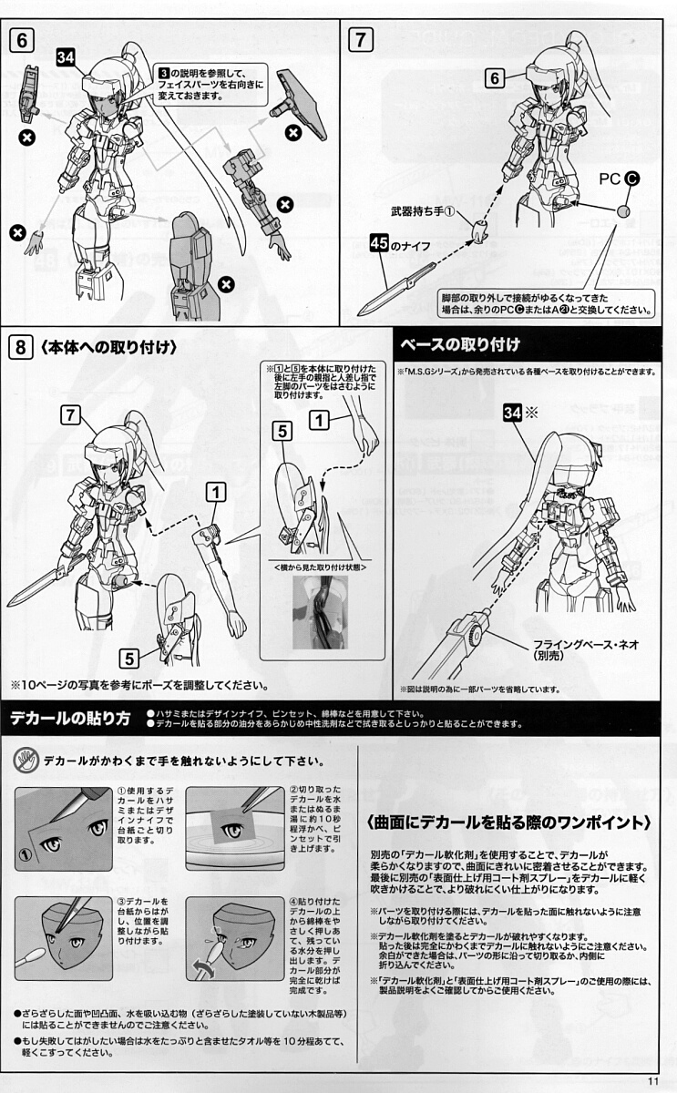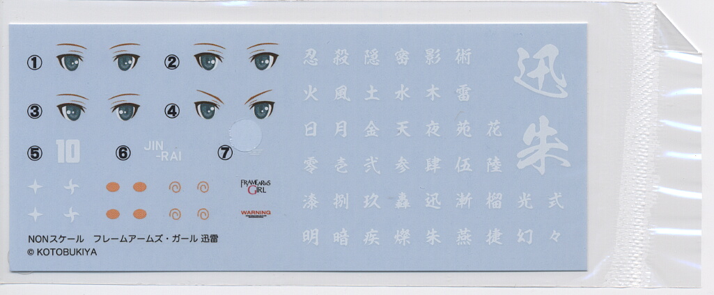 デカール。右半分は白い漢字デカールで色々種類があります。FAG迅雷のイメージが忍者である事がデカールからうかがえます。