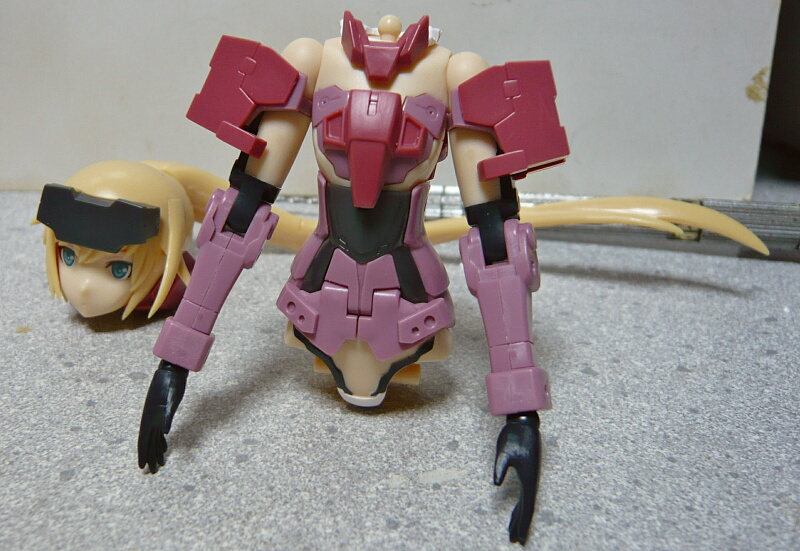 胴体が組みあがりました。FAGマテリアと同じ構成になっており、可動範囲はFAGマテリアに準拠します。非常に大きく動く股関節を持つ一方で胴体と腰の間で抜けやすいウィークポイントもFAGマテリアと同様。