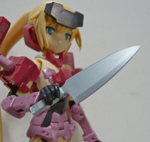 肩に付くパーツの後ろ側には刃物のうちやや大きい物のみ挟むようにしてマウント出来ます。
