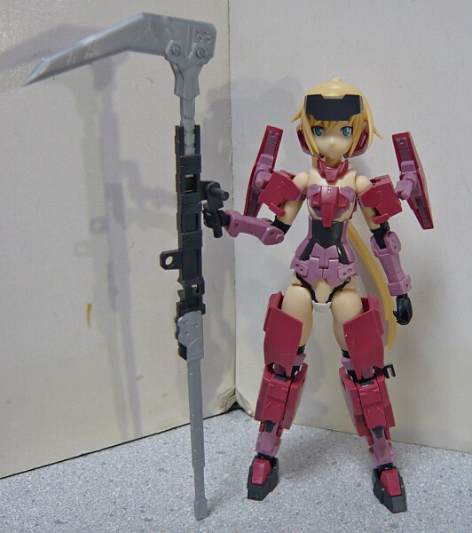 大鎌。ちゃんと草刈り用の大鎌のように中間の持ち手があります。これで大鎌警察(?)が来ても安心。彼らにすればガンダムWのデスサイズみたいに肩に担ぐのはナンセンスなんだとか。