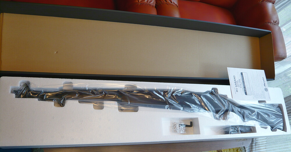 EBRのような近代化モデルとはいえM14を触っていると気になってくるのが先代モデルにあたるM1ガーランドという銃。アメリカ軍はこの銃をもって第二次大戦時に唯一「自動小銃」を全軍に近いレベルで配備していました(ソ連もSVT40などの自動小銃は配備していましたが一部に過ぎず、それどころかソ連兵は全員に小銃が行き渡ってすらいません…)。一見すればM1903などのボルトアクション小銃のような見た目ですが、セミオートでトリガーを引くだけで連射が可能な事は当時この銃を相手にした日本軍やドイツ軍の小銃が三八式やKar98Kなどのボルトアクション小銃と較べれば強力な火力となりました。まだ弾倉がマガジン式ではなくクリップに8発を込めて装填し、最終弾の発射後に「ピーン」と音を立てて排出されるのも特徴であり、この銃が愛される最大のポイントです。M1ガーランドのトイガンは電動ガンではICSやG&Gのものがありますが、普通のスタンダード電動ガンでありM1ガーランドの見た目をしているだけにすぎません。クリップが飛ばないガーランドなんて…という事で選択肢はおのずとガスブローバックになります。唯一マルシンが発売しているのですが、しばらく市場から消えていました。品切れとなるとやはり欲しくなってくるもので、再販を心待ちにしていたところ入荷!よし注文…うわっ高価っ・・・ええいこれしきの値段!(ポチリ)