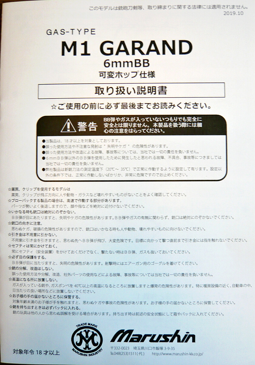 マルシン工業のガスブローバックガン、M1ガーランドです。