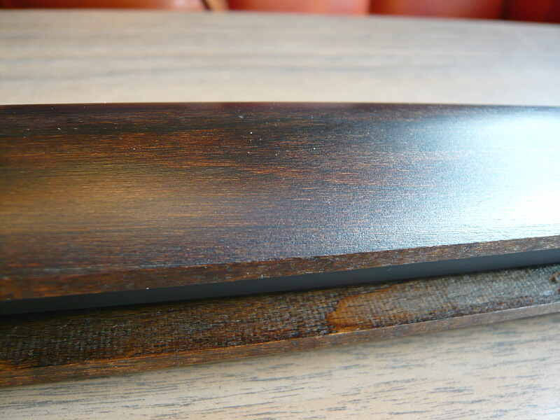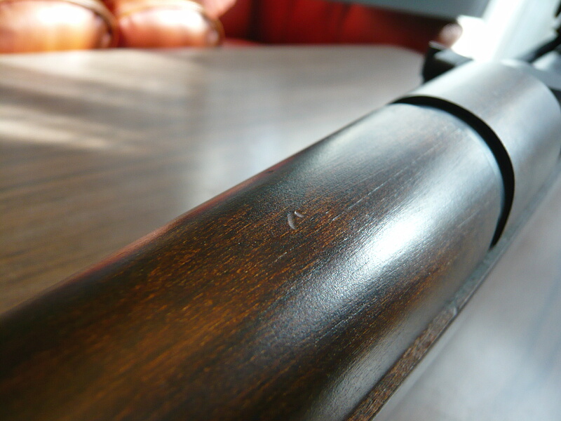 銃本体左右。色はダーク2ブラウンとありますが見本だともっと明るい茶色だったので、第一印象は「黒っ」こんな黒い木製パーツの銃は初めて。