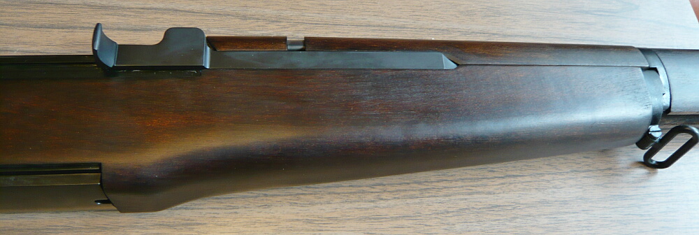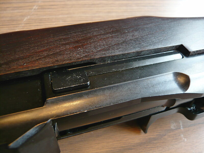 排出されたクリップは真上から前方にかけて飛ぶのでだいたいハンドガード上に着地します。なのでここに傷が付くのも承知しておきましょう。まああまり使用感の無いキレイなガーランドも何だかな…という事にしておきましょう。