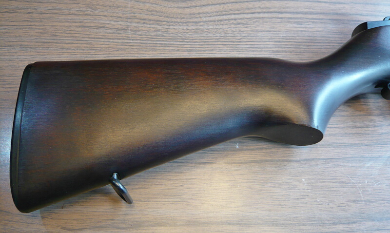 「木製ストックの温かみ~」と言われてもピンと来なかったのですが、この銃の木製ストックは確かに温かみを感じる気がします。表面をニスでテカテカに固めていたり家具調になるまで仕上げたりはしていないからでしょうか。