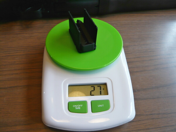 重量は27g。ひんやりしているので金属製であるのは確か。デコピンするとキンキンとした音が響きますが、鉄製のようなキ~ンとした響きではなく軽合金らしい収まりの早い響きかたをします。