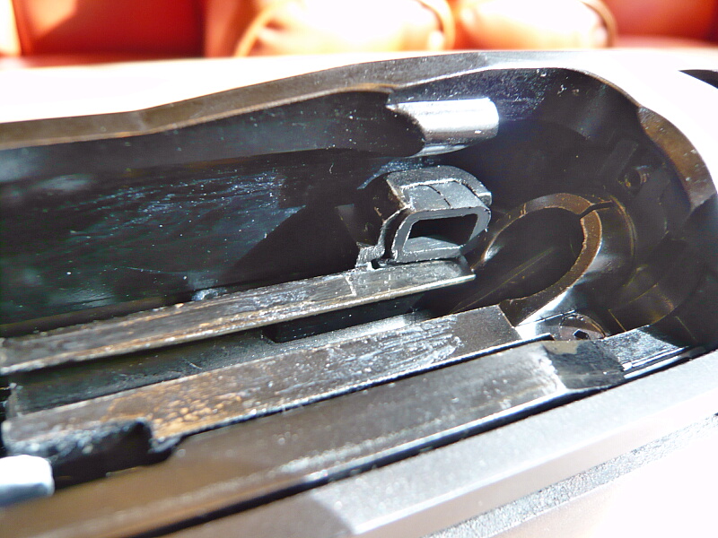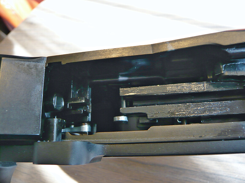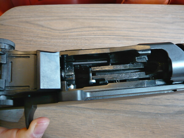 レシーバー後半部。マガジン式ではないのでトリガー前の部分は特に開閉などはしません。