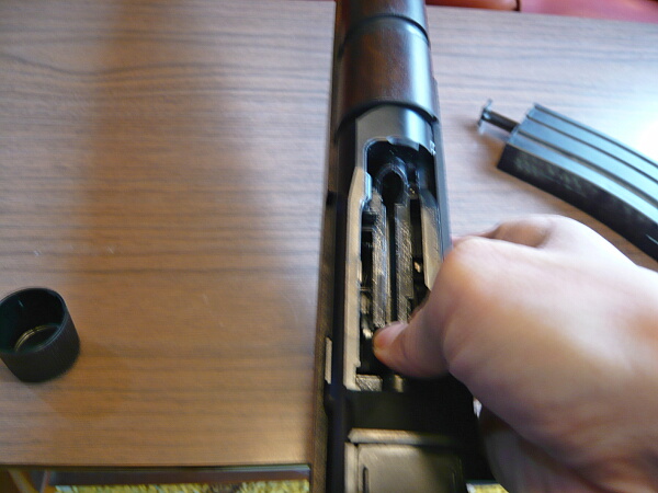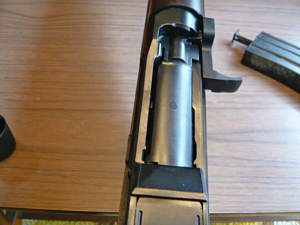 レシーバー前半部。M14とよく似たボルトハンドルが右側にあります。