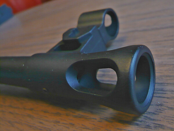 フラッシュハイダーとフロントサイト。ここは一体型になっており、ハイダーを交換する事はできません。SVD-Sがイマイチ「コレジャナイ」と思う点はまずこのハイダーなんだけどな・・・
