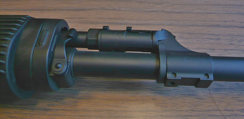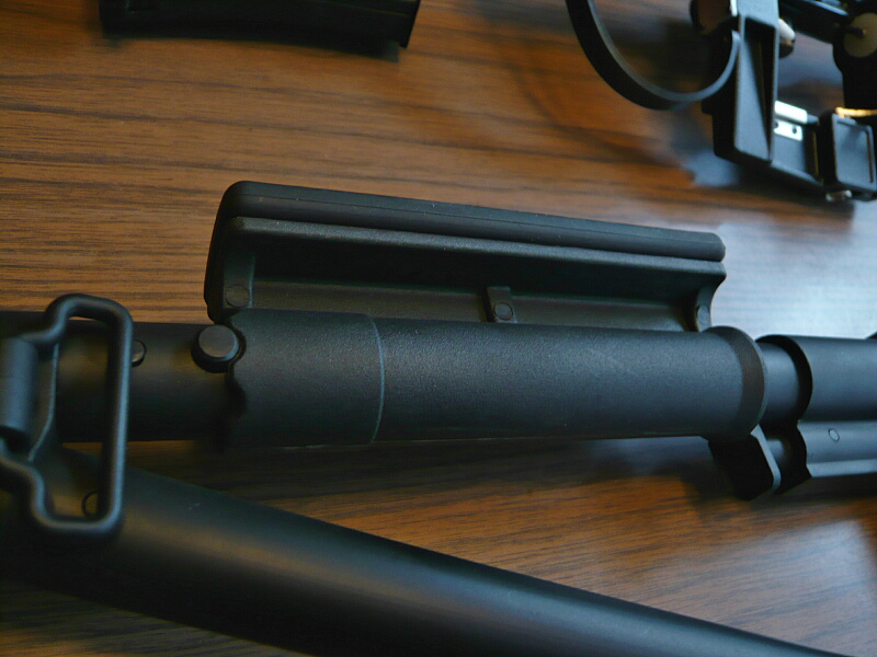 ガスブロック~ハンドガード前端。ハンドガード前端右側にハンドガードを外すためのロックレバーがあり、可動部分はここだけ。