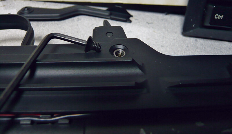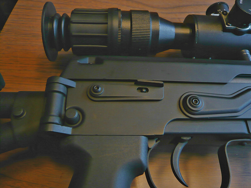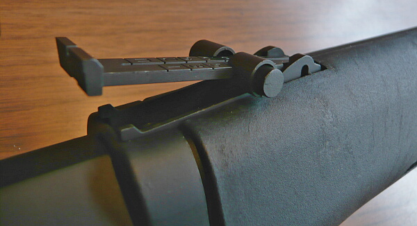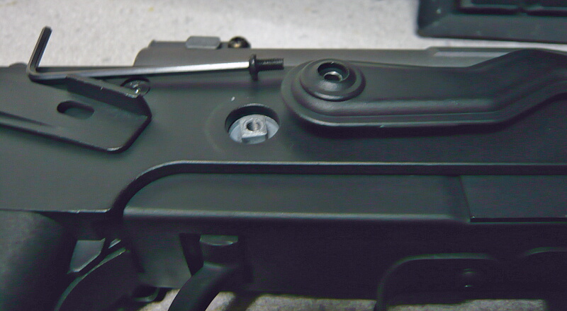 ハンドガード後端上面にはリヤサイトがあります。AKと同様のタンジェントサイト。