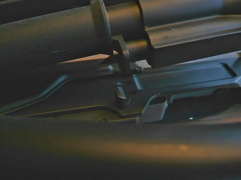 一方でレシーバーはマガジンとの嵌合が上から見渡せるようになっているのでストッパーの解除不良を検証してみましょう。普通にマガジンを挿した状態では、ストッパーを押しきれていません。