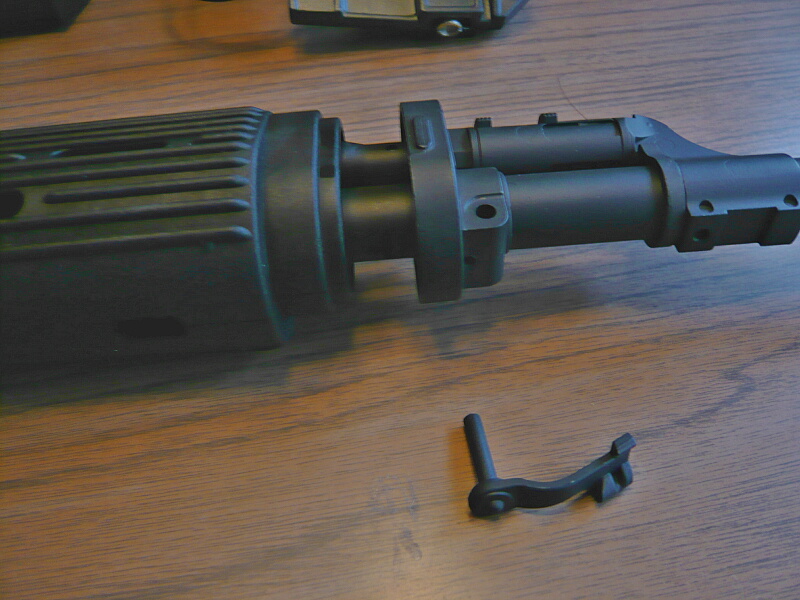 次に2発給弾の解決を。まずはチャンバーの様子を見るため、チャンバーを外しにかかります。ハンドガードとトップカバーを外してどうやるのか観察。