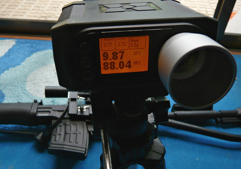 初速は88m/s前後、サイクルは秒10発弱。フルで撃つと5~6発ごとに不発→2発給弾があり、セミで撃っていても不発・2発給弾・バーストが頻発と正直なところめっちゃ不安定です。ちゃんと1発ずつ撃てさえすれば、初速も飛びも安定してはいるのですが。
