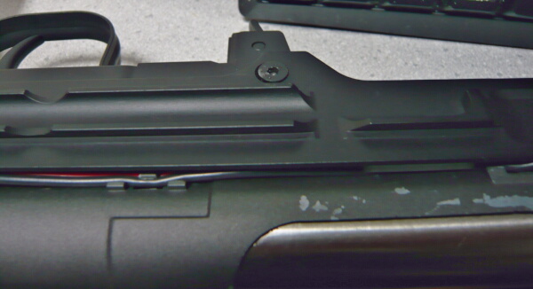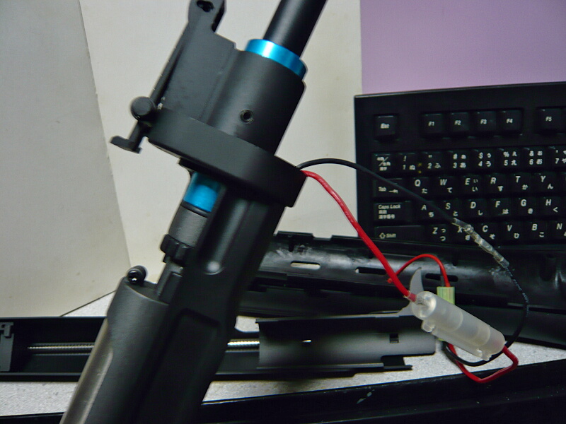 AKバッテリ―をアウターバレルの上、本来ガスパイプがある位置に収めます。