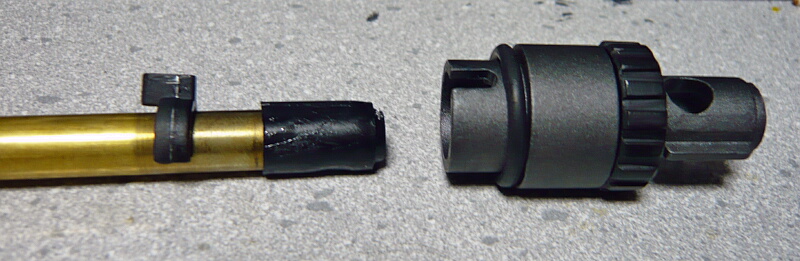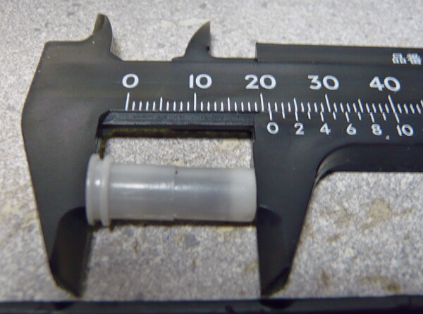 ノズル長と形状的には一見M4用っぽいですが内径が微妙に広く、逆にM4用ノズルはシリンダーヘッドのパイプに刺さりません。M4用など汎用はノズル内径5.45mmほどなのに対しこのSVD-Sのものは5.6~7mmほどあります。