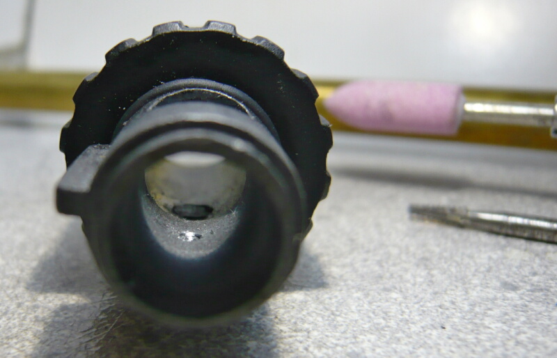 一応リューターで掘り足しておきます。もっともこの銃の場合は不発の後で2発給弾なのでチャンバーではなくタペットプレートの動作タイミングに問題があると推測されます。他に考えられる原因も考えてみれば、マガジンが刺さった状態でストッパーが掛かったり解除されたりしている可能性も疑われます・・・