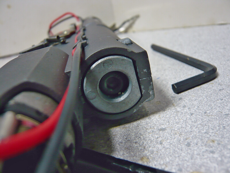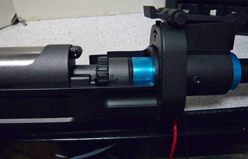 ホップ調整はチャンバーブロックにあるバレル同軸のダイヤルを回す事でなされます。これはホップ最弱時。