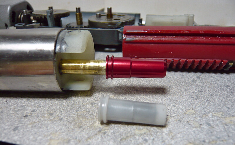 ピストンは普通の電動ガン用汎用品と互換があるようです。吸排気系ではノズル、シリンダーヘッド、タペットプレートだけが専用品となっています。