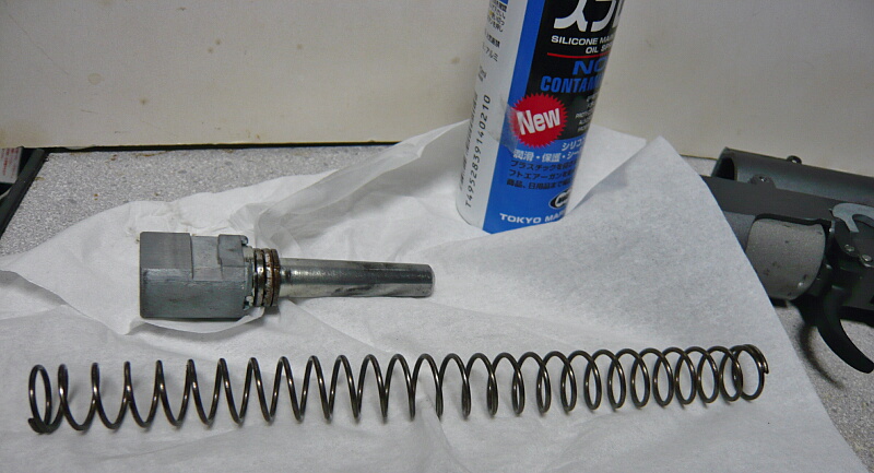 スプリングとスプリングガイドは油気が無かったのでシリコンオイルを吹いておきました。
