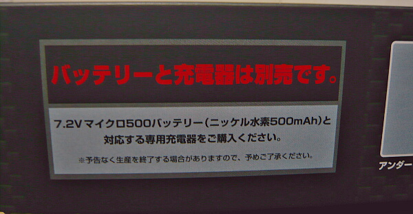 こちらはコンパクト電動ガンと違いバッテリーと充電器は付属しないので別に用意する必要があります。もっとも最近はコン電の方もバッテリーと充電器は別売になったらしいですけれど。