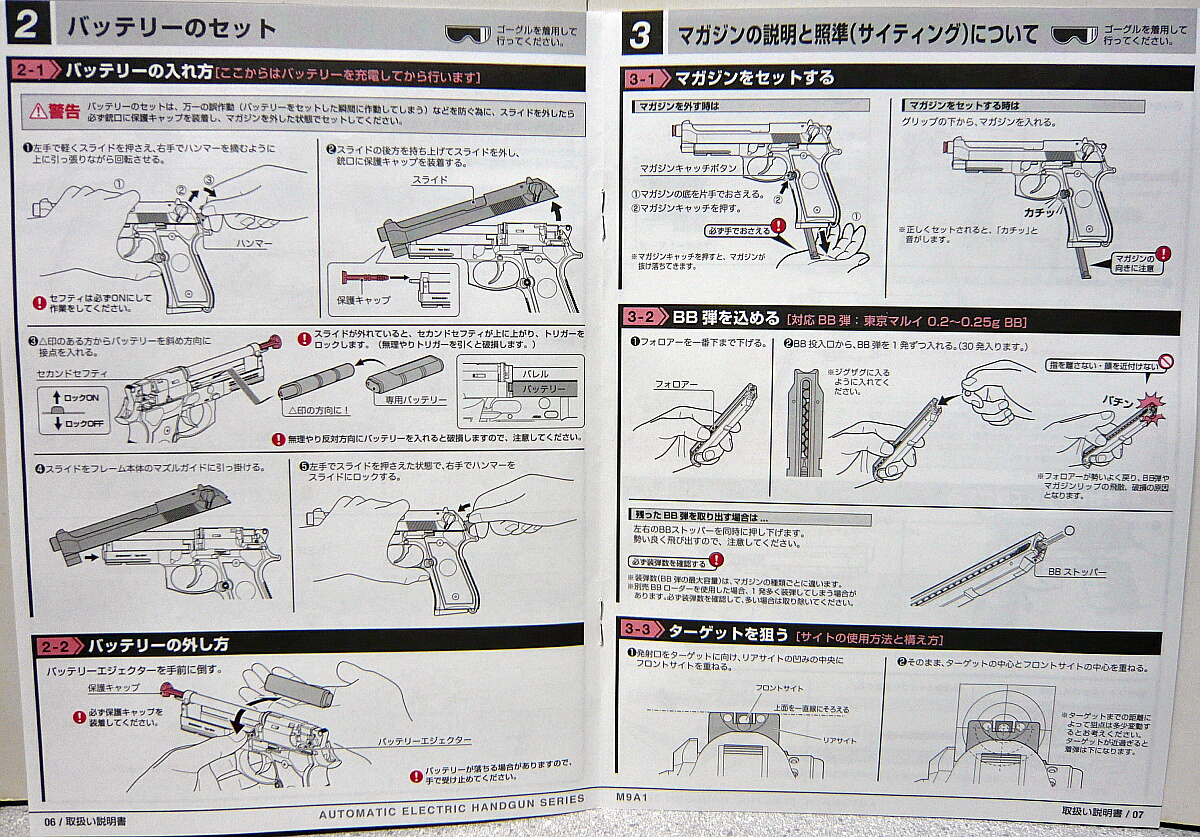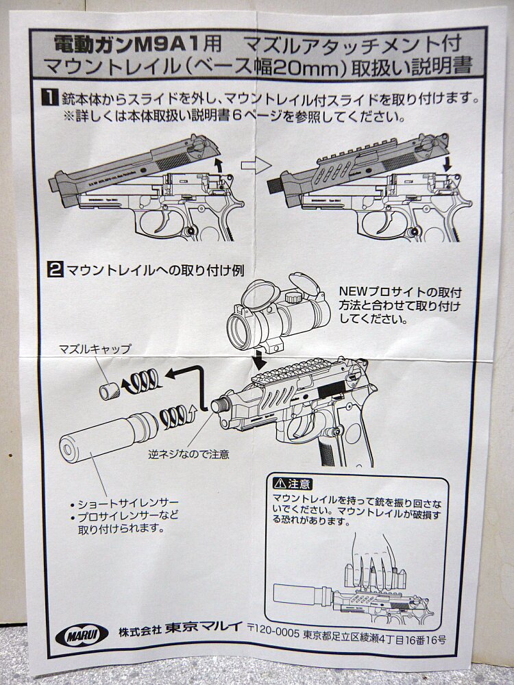説明書。G18CやUSPなんかだと元のスライドの上から前にかけて被せるように取り付けるようになっていますが、M93RとM9A1はスライドを丸々交換するだけで済みます。ただしその分お値段はやや高くなってしまいますが、とはいっても4千円弱で買えるのでガスブローバックのスライドのガワだけに較べても安いもの。