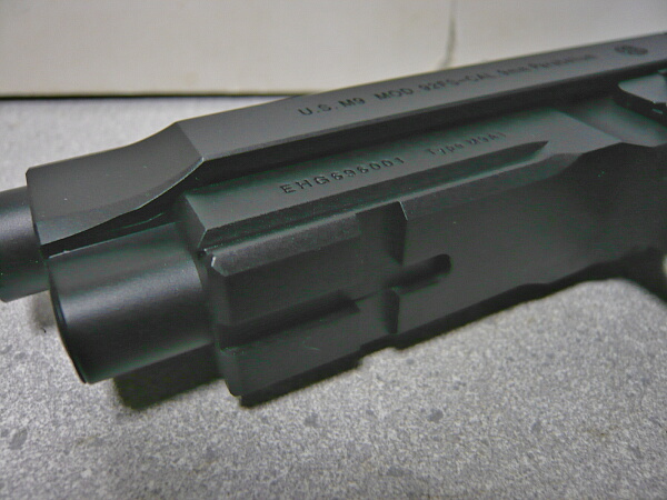 フレーム前端下にあるレイル。M9からM9A1にモデルチェンジした際のおそらく最も目立つ変更点がここでしょう。20mmのピカティニーレイルの規格に沿ったレイルですがここに付ける事を想定しているアクセサリーしか取り付きません。汎用のフォアグリップなどはレイルが微妙に合わないので取り付ける事ができません。