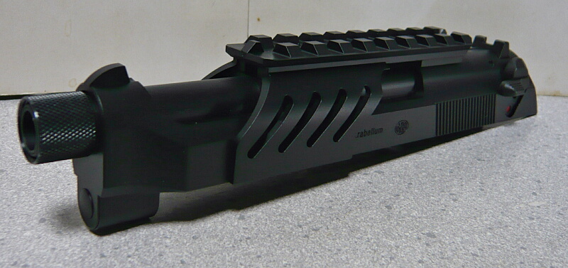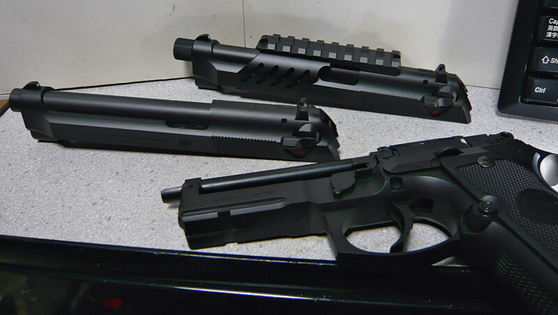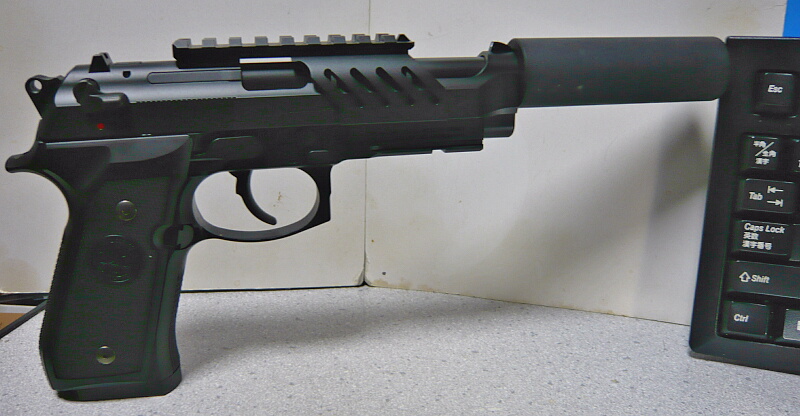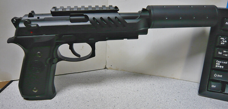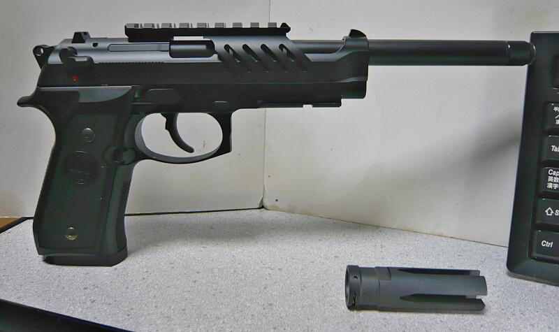 G36Kのアウターバレルだと元のバレルの太さに近いです。何か間延びしたワルサーP38というか、デジコンM92Fロングバレルというか・・・