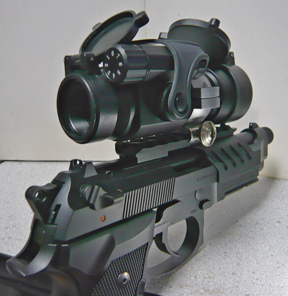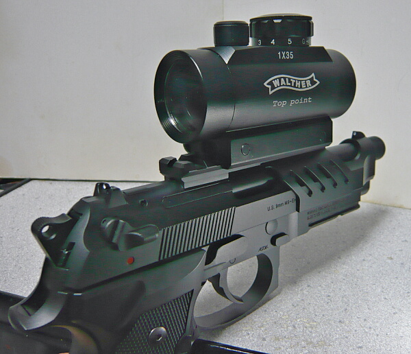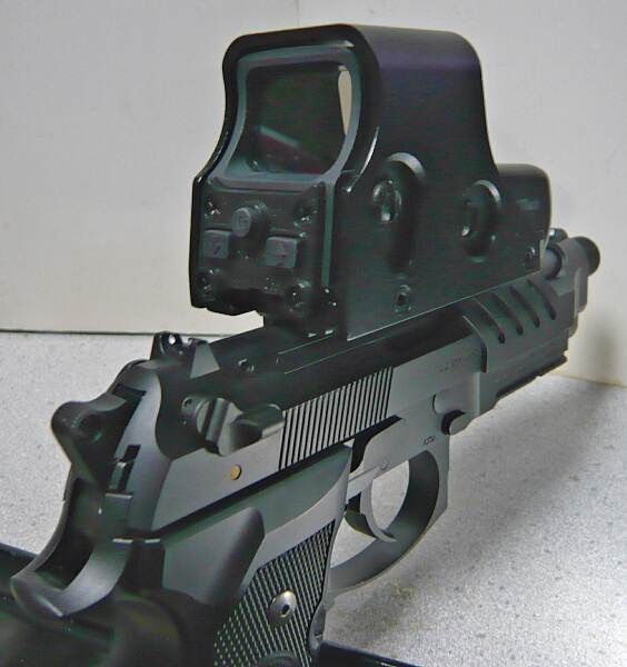 ドットサイトの定番としてはやや旬が過ぎたかな?という印象のM2のレプリカ。ミリタリーな外観と使いやすい操作性が特徴ですが、ハンドガンにはちょっとデカイ印象。チューブ径の割に視野は広く、比較的目に近い位置に取り付けても使いやすいです。