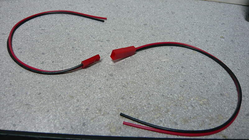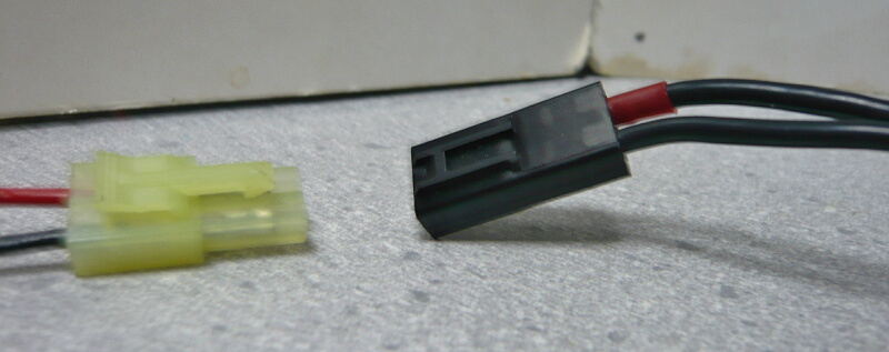 端子はタミヤコネクタミニタイプよりも全長・全幅が2/3程度、厚さが半分ほどのBECコネクター。BECコネクターはラジコンの受信機の電源に使われる端子・・・だったかな?昔のラジコンバギーなどでスピコン(スピードコントローラー)が付いていた時代のものをいじった事がある人は見覚えがあるかもしれません。
