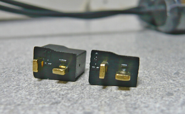 抜き差しを繰り返すうちにオス側(上画像左)の中にある筒状の端子部が拡がってしまい、接触不良や加熱による外装の溶解、果ては発火などが起きます。