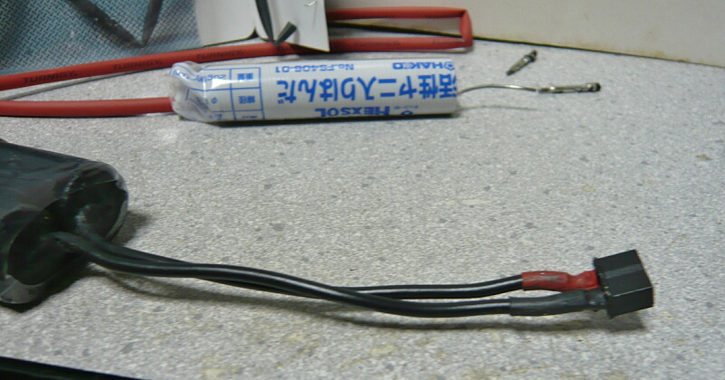 配線の長さが決まったらカットしてモーターコネクタを付けて熱収縮チューブを被せてこちらは出来上がり。